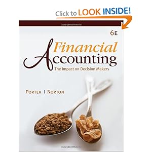 "Introductory accounting students are often overwhelmed and need assistance in understanding major topics of importance. POD Reviews help students understand what is most vital in the chapter information." Product Description "POD Reviews will help students with test preparation. Quizzing at regular intervals should lead to better exam performance." "The POD Reviews are an excellent idea. Placing them after every learning objective creates immediate feedback and affirmation of their understanding." Porter and Norton's real-world approach in FINANCIAL ACCOUNTING: THE IMPACT ON DECISION MAKERS, Sixth Edition, gives you an up-close perspective on how accounting truly affects businesses today. You will explore an appropriate "focus company" with each chapter, applying accounting principles in the context of that company's specific financial information and business strategy, giving you the real-world experience with financial data you need to succeed in business. Further, Porter and Norton's student-friendly, step-by-step decision framework guides you through a 6-step process on how to effectively use financial information early in the course, laying a stronger foundation for the more complex concepts to follow. FINANCIAL ACCOUNTING: THE IMPACT ON DECISION MAKERS, Sixth Edition, goes beyond typical texts that drill students on the numbers and procedures to address additional important issues, such as ethical dilemmas in business decisions and alternate terms you may encounter in the business world.