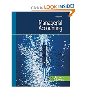 Product Description Prepare your students to perform at their best with the latest streamlined and reorganized edition of this innovative managerial accounting text. Hansen/Mowen's MANAGERIAL ACCOUNTING, 8E reflects the latest developments in managerial accounting today with a strong decision-making approach that integrates unmatched coverage of contemporary topics, such as strategic cost analysis, ABC, and quality cost management, with traditional coverage of issues such as job order and process costing. Unique, full chapters on environmental accounting and lean accounting further highlight cutting-edge concepts. A wealth of actual business examples throughout this edition include more service-oriented situations to mirror the shift toward the service industry in the economy today. A new emphasis on ethics prepares students for CPA and CMA exams. You'll find more variety and stronger end-of-chapter problems and exercises that correspond directly to AACSB and CMA standards to ensure student understanding in these important areas. A new, outcomes-driven CengageNOW online teaching and learning system saves you time and offers the ultimate flexibility in planning, managing, and grading your course with personalized learning paths to ensure stronger student performance and ongoing satisfaction with your managerial accounting course. About the Author Dr. Don R. Hansen is Professor of Accounting at Oklahoma State University. He received his PhD from the University of Arizona in 1977. He has an undergraduate degree in mathematics from Brigham Young University. His research interests include activity-based costing and mathematical modeling. He has published articles in accounting and engineering journals including THE ACCOUNTING REVIEW, JOURNAL OF MANAGEMENT RESEARCH, ACCOUNTING HORIZONS, and IIE TRANSACTIONS. He also served on the editorial board of THE ACCOUNTING REVIEW. His outside interests include taking part in family and church activities, reading, watching movies, watching sports, and studying Spanish. Dr. Maryanne M. Mowen is Associate Professor of Accounting at Oklahoma State University. She received her PhD from Arizona State University. With degrees in economics and history, Dr. Mowen brings a unique interdisciplinary perspective to teaching and writing in both cost accounting and management accounting. Her research interests include management accounting, behavioral decision theory, and Sarbanes-Oxley compliance, and she teaches an ethics course about the impact of Sarbanes-Oxley on the accounting profession. She has published articles in journals such as DECISION SCIENCE, JOURNAL OF ECONOMIC PSYCHOLOGY, and JOURNAL OF MANAGEMENT ACCOUNTING RESEARCH. Dr. Mowen has served as a consultant to midsized and Fortune 100 companies and works with corporate controllers on management accounting issues. Outside the classroom, she enjoys hiking, traveling, reading mysteries, and solving crossword puzzles.