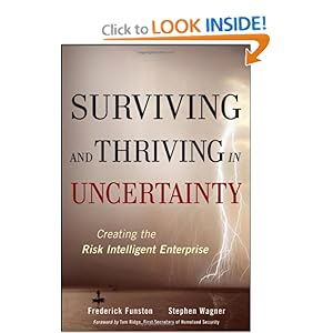 Review "The authors propose a more holistic approach of "risk intelligence," in which leaders acknowledge and prepare for a wide range of potential threats. The authors isolate ten essential risk intelligence skills-such as abandoning familiar assumptions, anticipating causes of failure, and sustaining operational discipline-and provide in-depth guidelines for how executives and board members can hone these skills. They understand that there is no reward without risk - but only if the risks are properly managed." (BizEd, July/August 2010) Product Description A new book to help senior executives and boards get smart about risk management The ability of businesses to survive and thrive often requires unconventional thinking and calculated risk taking. The key is to make the right decisions—even under the most risky, uncertain, and turbulent conditions. In the new book, Surviving and Thriving in Uncertainty: Creating the Risk Intelligent Enterprise, authors Rick Funston and Steve Wagner suggest that effective risk taking is needed in order to innovate, stay competitive, and drive value creation. Based on their combined decades of experience as practitioners, consultants, and advisors to numerous business professionals throughout the world, Funston and Wagner discuss the adoption of 10 essential and practical skills, which will improve agility, resilience, and realize benefits: Challenging basic business assumptions can help identify "Black Swans" and provide first-mover advantage Defining the corporate risk appetite and risk tolerances can help reduce the risk of ruin. Anticipating potential causes of failure can improve chances of survival and success through improved preparedness. Factoring in velocity and momentum can improve speed of response and recovery. Verifying sources and the reliability of information can improve insights for decision making and thus decision quality. Taking a longer-term perspective can aid in identifying the potential unintended consequences of short-term decisions.